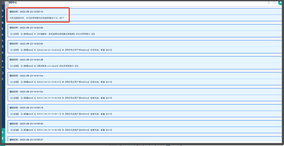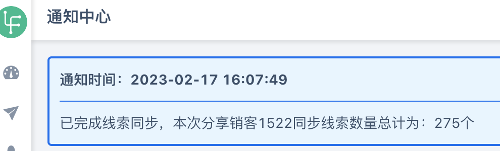 2、直接点击,就开始进行历史线索数据的同步任务了。同步完成之后,在通知中心有消息提示,如下:
