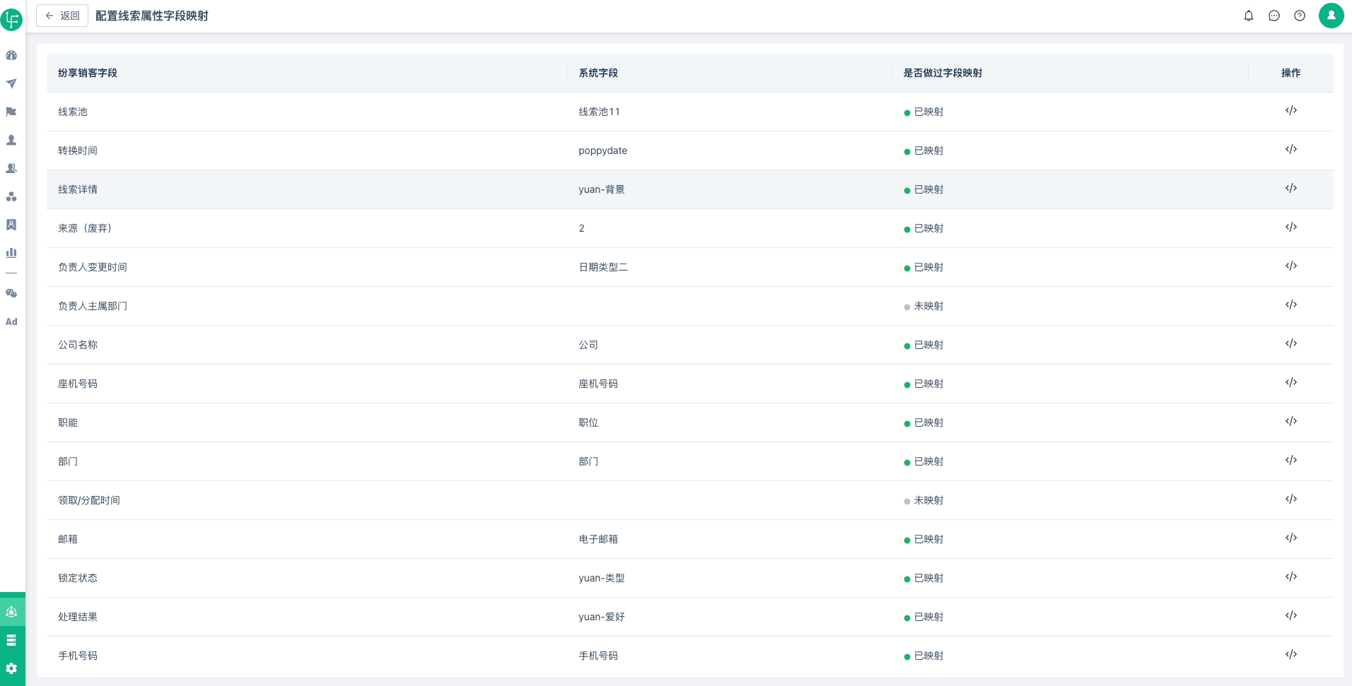 1、在Linkflow端打开纷享销客“连接详情”页面,找到“配置线索属性字段映射”,如下图: